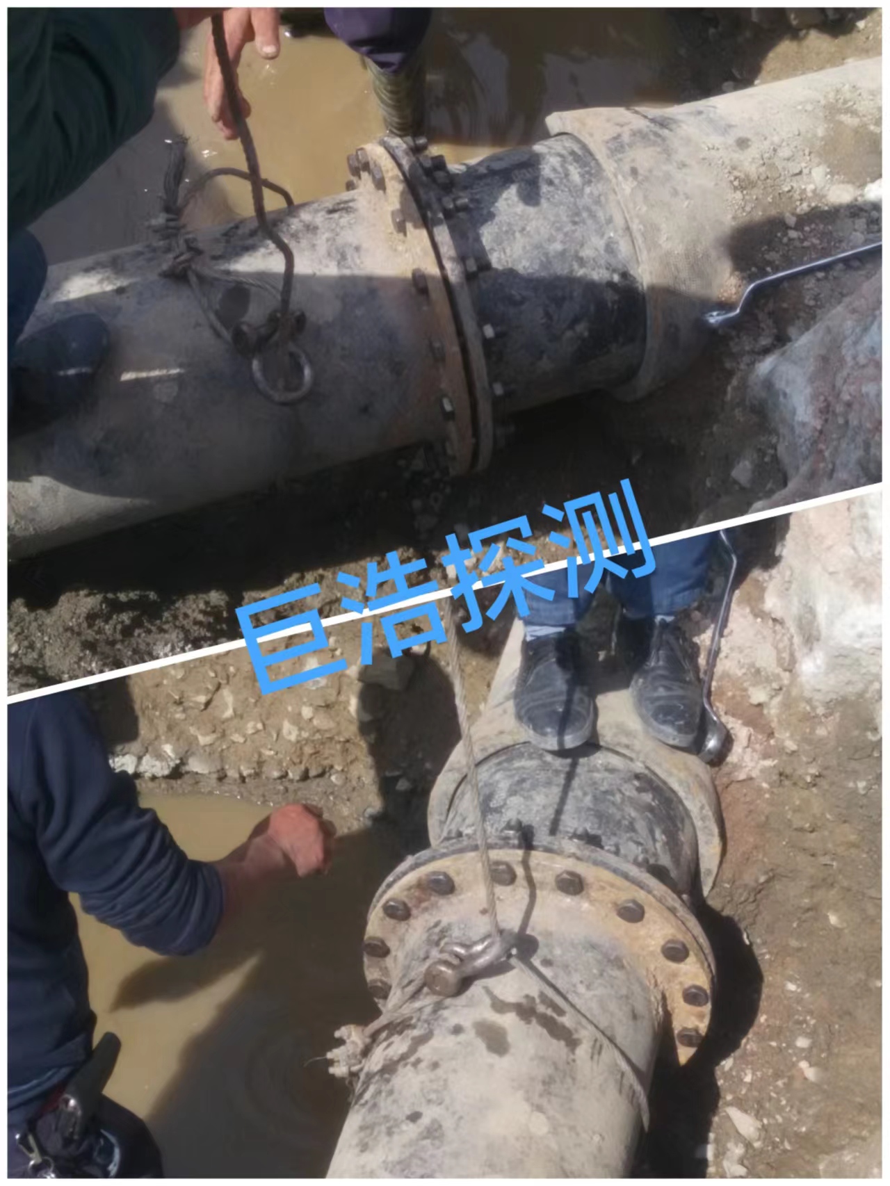 最终精准定位漏水点。此漏水为球磨铸铁管道法兰盘连接处漏水,管径为DN400口径,最后听过测量其每小时的漏水量在2方左右,建议更换使用新的法兰盘及水管管线或使用年限较长的管线做防腐层检测。