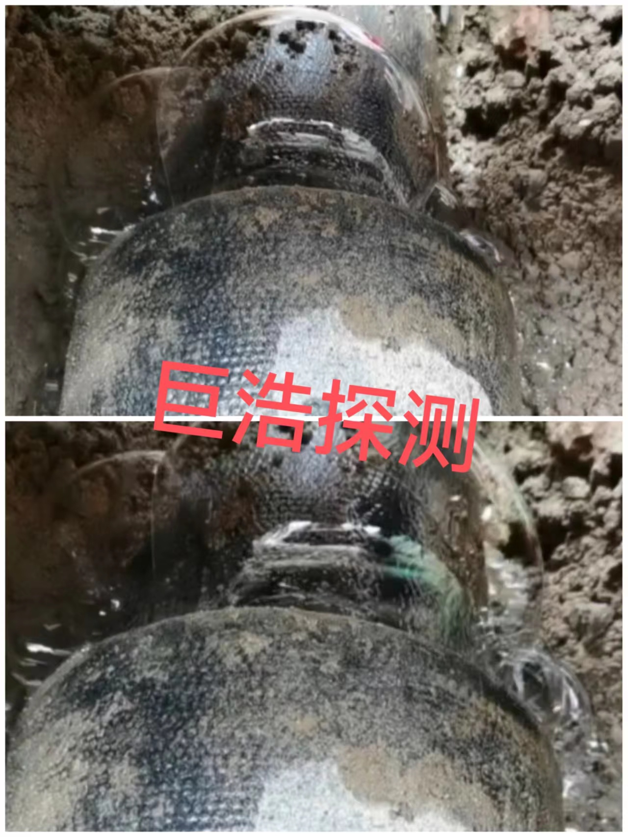 在经过5天的探测时间中,我司相关技术探测人员共检测出2处漏水点,都为DN150球磨铸铁管道,其管道埋设在1.8米左右,由于甲方着急验收,准备交付投入使用,施工方连夜组织人员开挖维修。根据此次的漏水检测要想实现漏水点精准定位,及时修复漏点,就要了解管道漏水有哪些常见现象,经分析,常见的管道漏水现象。球墨铸铁管连接处为胶圈密封,在施工中胶圈没有装好,或接口没连接到位,导致胶圈挤脱、水泥承口松脱,可能造成接口处漏水。