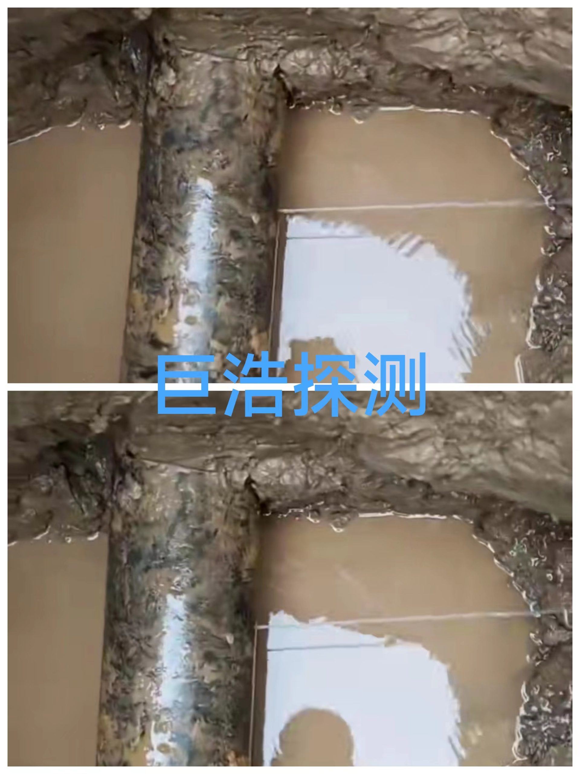 经过检测后,二区方向某道路路口检修井内发现积水,水质化验确认为低温热水,甲方抽水后,可见管线埋深八米的弯头处有明显漏水,随即对该管段使用探知机、听音杆等仪器进行详细的漏水检测工作,于古站路北侧管道井内部锁定漏水点;同时开展供东区低温热水管线详查,于道路上方发现异常声音,打开附近的井口发现井下埋深一米管线周围墙体存在明显流水,经听音检测后确定该位置为泄漏点。