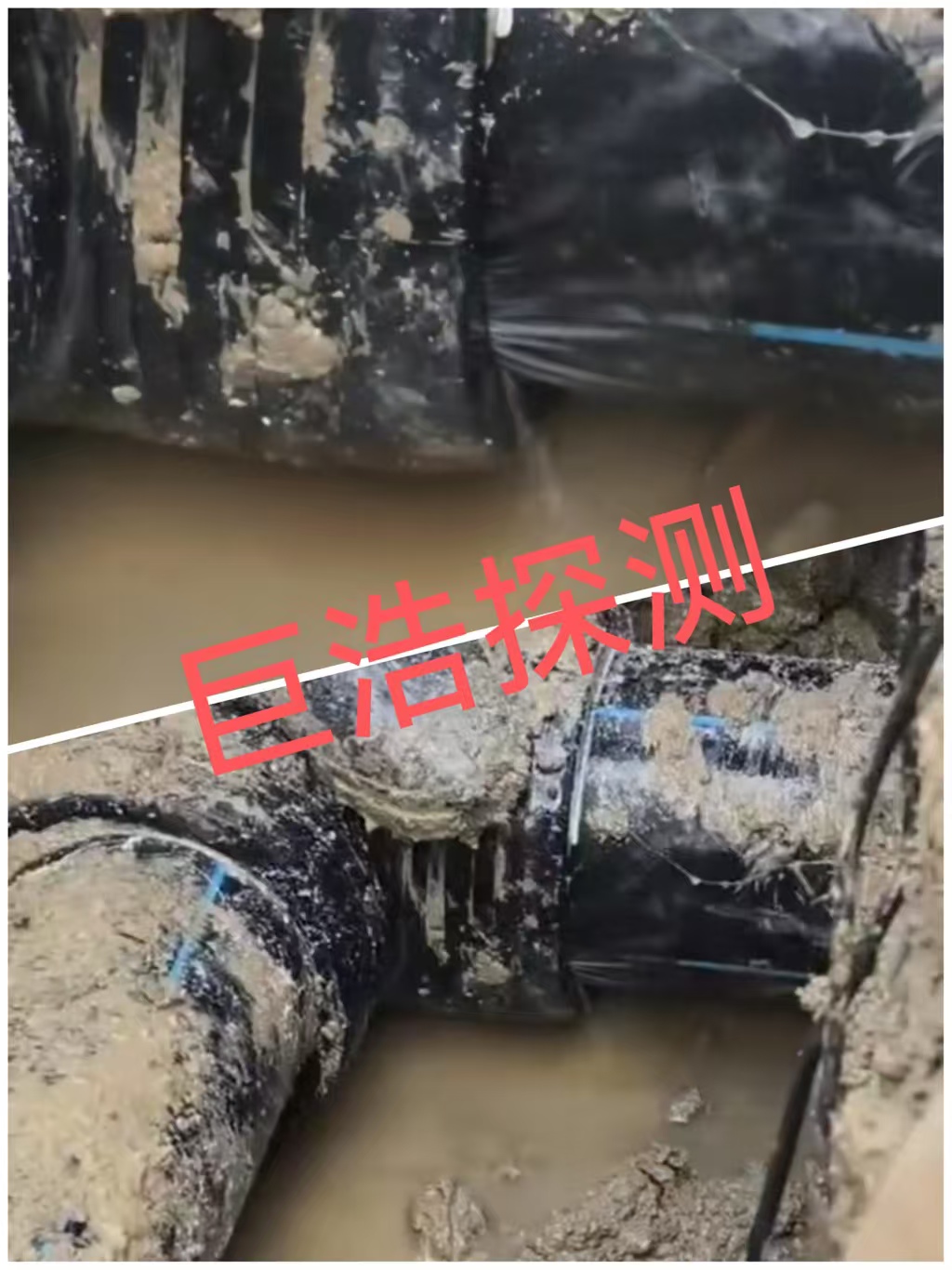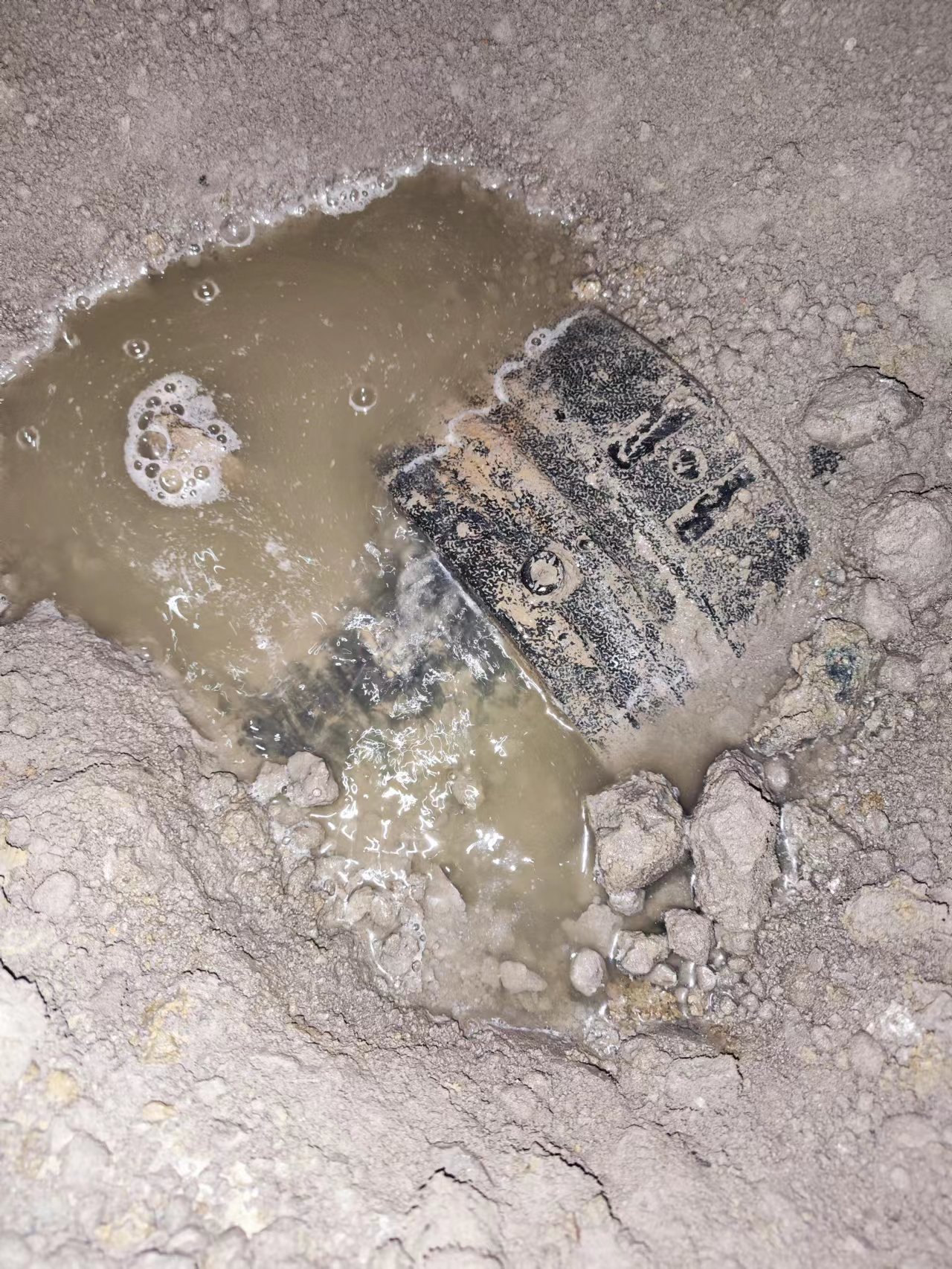 我司探漏技术组通过现场做了方案实施,取得了最终漏水检测成果,在确定漏点位置后便组织施工队对漏点进行开挖修复工作,开挖后发现两处漏水点,根据漏点情况进行漏水量估算,在漏水点进行公式估算中,两处漏水点平均一天漏水量在6方左右。(下图)